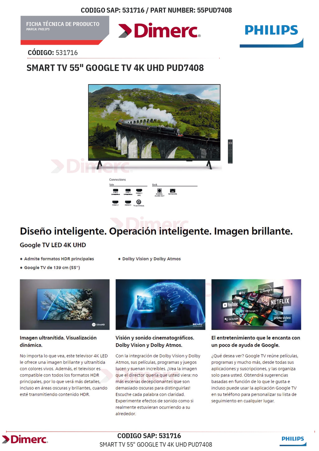 ¿Tienes ganas de cambiar tu televisor y no sabes por cuál? El smart TV 55" android 4K UHD 65pud7406 de Philips, es perfecto para ver una película, programas, partidos o deportes el fin de semana, este siempre te ofrecerá imágenes brillantes.